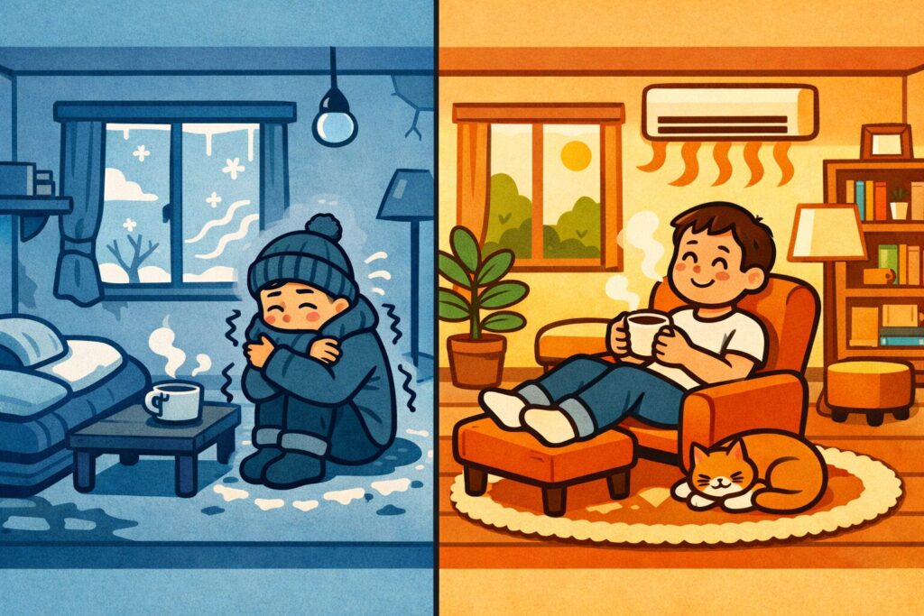 賃貸か持ち家の違いが心疾患の死亡リスクに与える影響を解説。命を守る適切な室温管理と実践的な防寒対策のヒントをご紹介します。