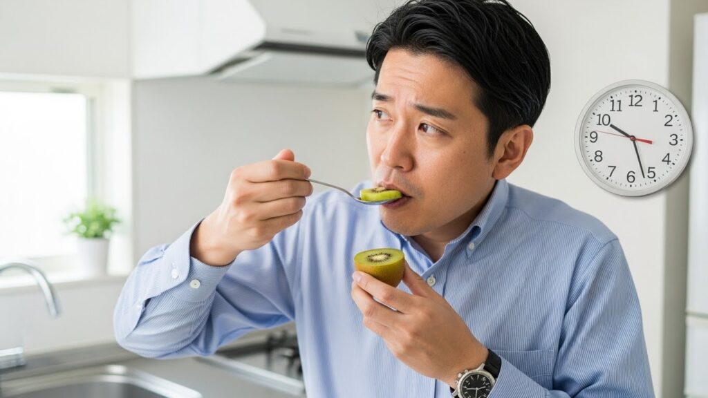 研究で使用されたのはサンゴールドキウイですが、一般的なキウイでも代用可能です。朝食やデザートとして固定しましょう。