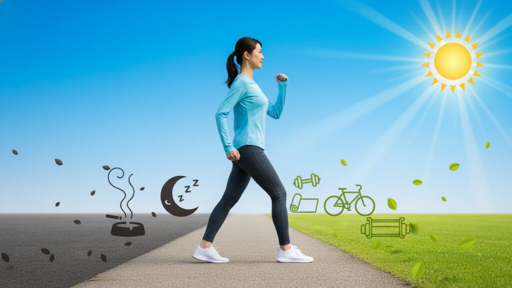 毎日30分のウォーキングや軽い筋力トレーニングなど、無理なく続けられる中程度の活動を生活に取り入れ、抗炎症・抗酸化作用を引き出しましょう。
