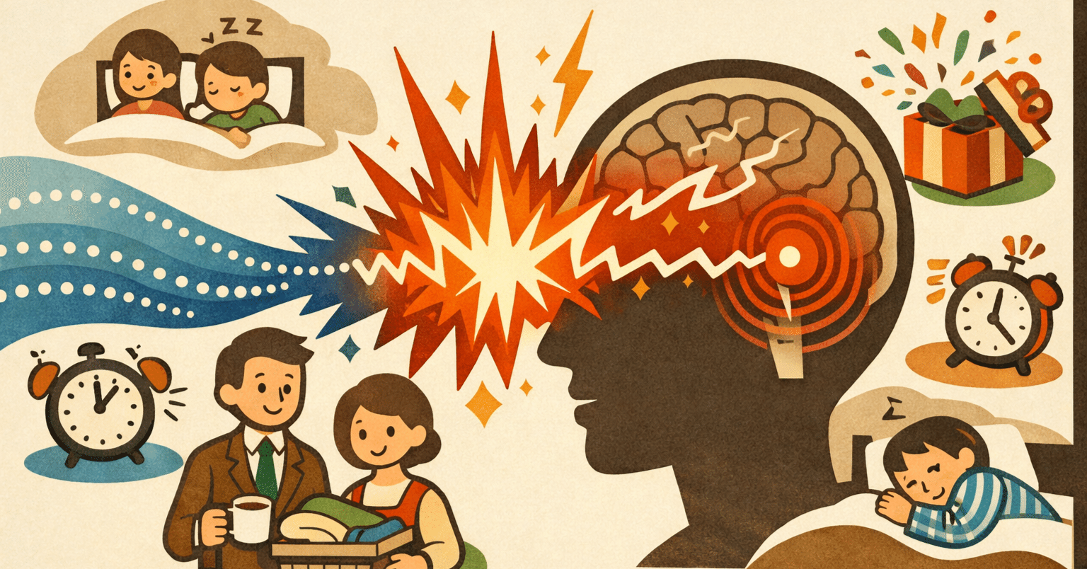 🟢教訓:何を食べるか以上に、「毎日同じリズムを保つこと」が重要です。良いサプライズ(楽しみなイベント)でも脳には負担になるので注意しましょう。