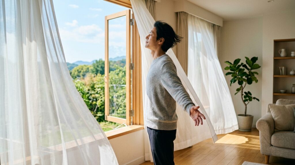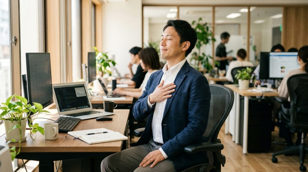 途中で別の思考が浮かんでも、それを否定せず「今、別のことを考えていたな」と客観的に気づき、再び意識を呼吸へと戻します。