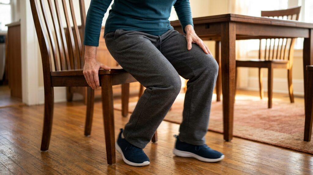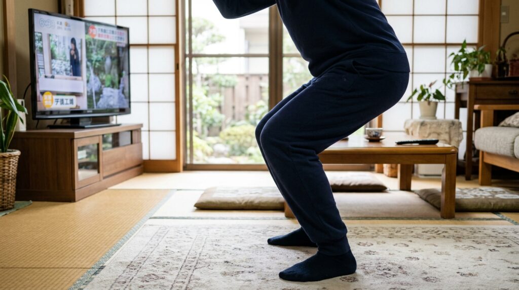 椅子から立ち上がるスピードが遅い人ほどリスクが高いため、自宅でできる「スクワット」や「椅子からの立ち座り運動」を習慣にしましょう。