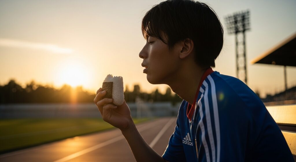 | 炭水化物 | 最初の4時間は毎時 1.0〜1.2g/kg<br>※少量ずつ頻繁に摂取する | おにぎり、バナナ、ゼリー飲料を20〜30分おきにこまめに食べる。 |