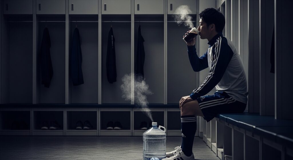| 水分 | 失った体重の**150%**の量を飲む | 汗で1kg減ったら、1.5リットルを数回に分けて飲む。 |