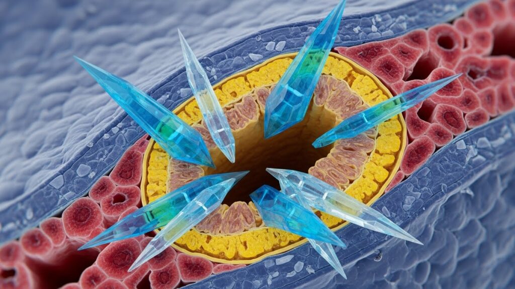鋭利なプラスチック粒子が血管壁で免疫細胞を刺激し続け、慢性的な「火事(炎症)」を引き起こしている可能性があります。