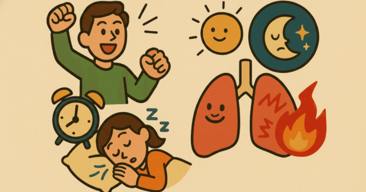 🟢教訓:「睡眠」は体を休めるだけじゃない。“炎症”を抑えて肺の健康を守り、体内の老化速度を遅らせる大事な習慣である。