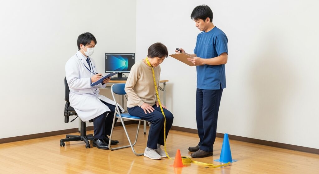 椅子から立ち上がり、3メートル歩いて戻ってくるまでの時間を測るテストです。