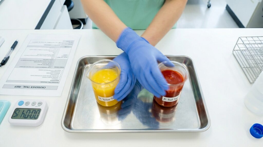 この調査は、対象者全員が2種類のジュースを順番に試す「クロスオーバー試験」という非常に信頼性の高い手法を用いて行われました。