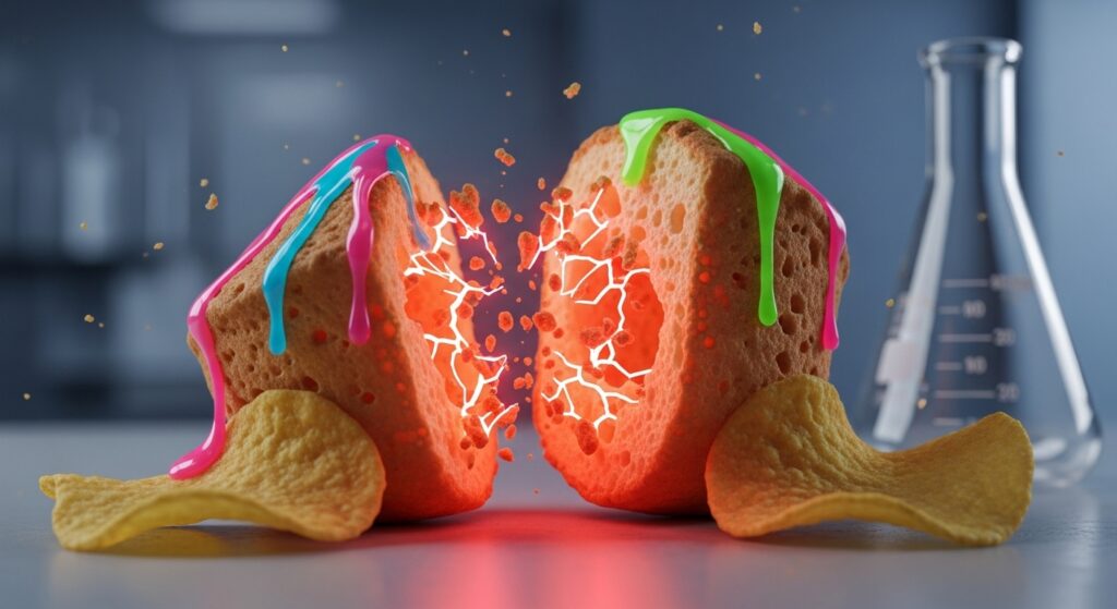 🟡 結果:帳消しにできません。 超加工食品の摂取量が10%増えるごとに、認知機能障害のリスクは16%、脳卒中のリスクは8%増加しました。これは健康的な食事をしていても消えない独立したリスクです。