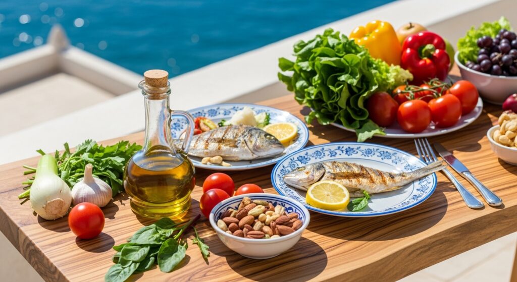 • 特徴:オリーブオイル、野菜、果物、ナッツ、魚をたっぷり食べ、赤肉(牛・豚)やバターは控える。
