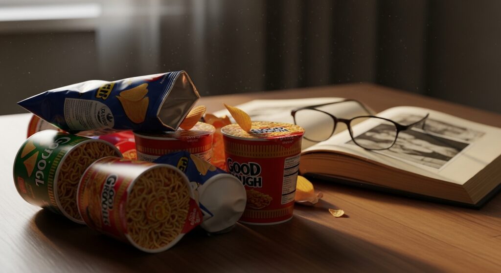 🔴 疑問:「体に良い食事(サラダや魚など)をしていれば、多少のカップ麺やスナック菓子(超加工食品)を食べても、脳への悪影響は帳消しにできるのか?」