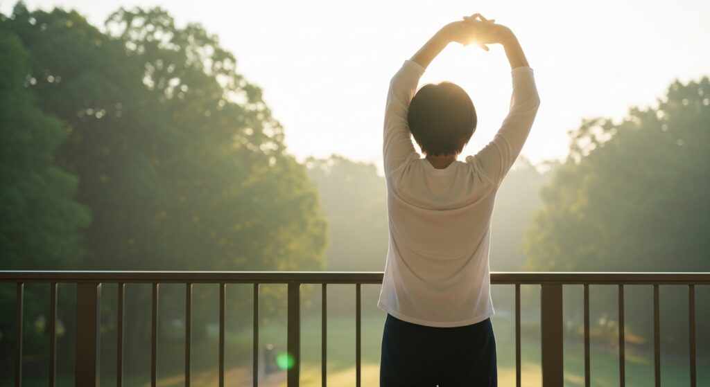 練習の最初と最後に、「私は健康だ」「私はリラックスしている」と短く唱えてみましょう。